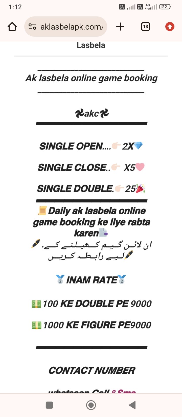 *DAILY AK LASBELA ONLINE GAME BOOKING KE LIYE RABTA KARY*
